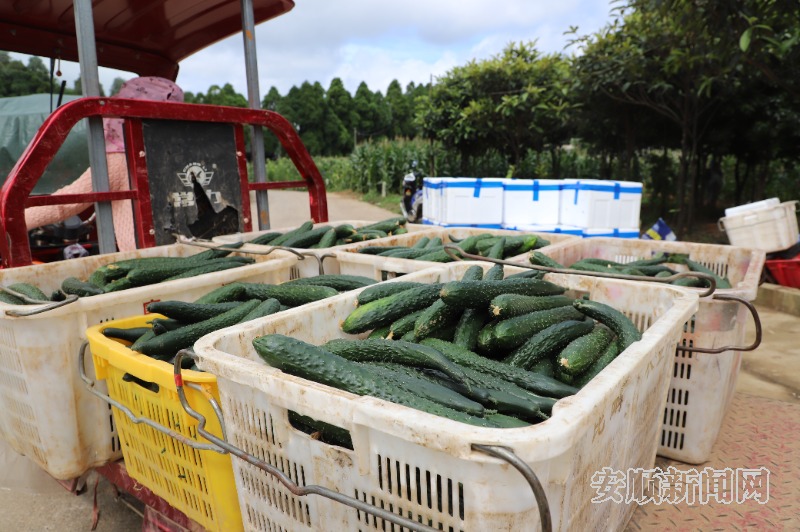时下正值黄瓜成熟上市的季节。近日,记者来到平坝区鼓楼街道天马村,该村黄瓜种植基地迎来大丰收,一大片翠绿的黄瓜地生机勃勃,一根根鲜嫩的黄瓜挂在支架上,让人垂涎欲滴。