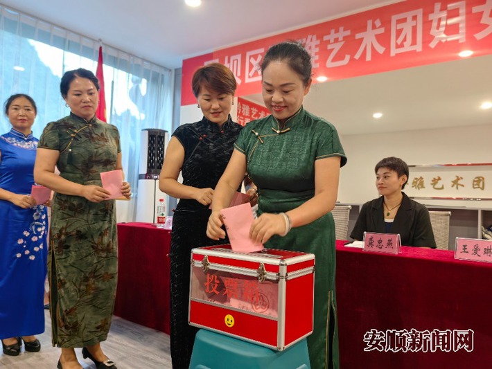 7月22日,平坝区黔雅艺术团妇女第一次代表大会召开,来自区妇联、安平街道以及黔雅艺术团的100余名妇女代表参加会议。大会采取无记名投票方式选举产生了黔雅艺术团第一届妇联执委15名,在随后召开的第一届执行委员会第一次会议上,选举出主席1名、副主席2名。