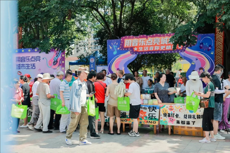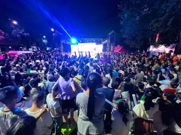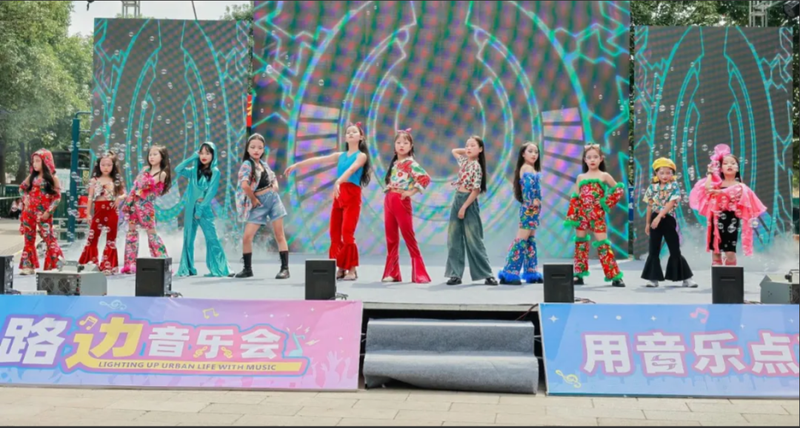 “当离别开出花,伸出新长的枝桠。像冬去春又来,等待心雪融化……”开场一首《离别开出花》瞬间点燃了全场观众的热情,大家配合着节奏,挥舞着手中的荧光棒。期间,来自不同领域、风格各异的音乐表演者轮番登场,当器乐表演《西游记》《唢呐独奏》,歌曲《好花红》《往日时光》等熟悉的旋律响起时,不论是现场的观众还是路过的市民,大家立即跟着合唱起来,小小的路边音乐会仿佛变成了大型演唱会现场,在晚风轻拂的夜晚,在车水马龙的街头,音乐与城市的夜相得益彰。