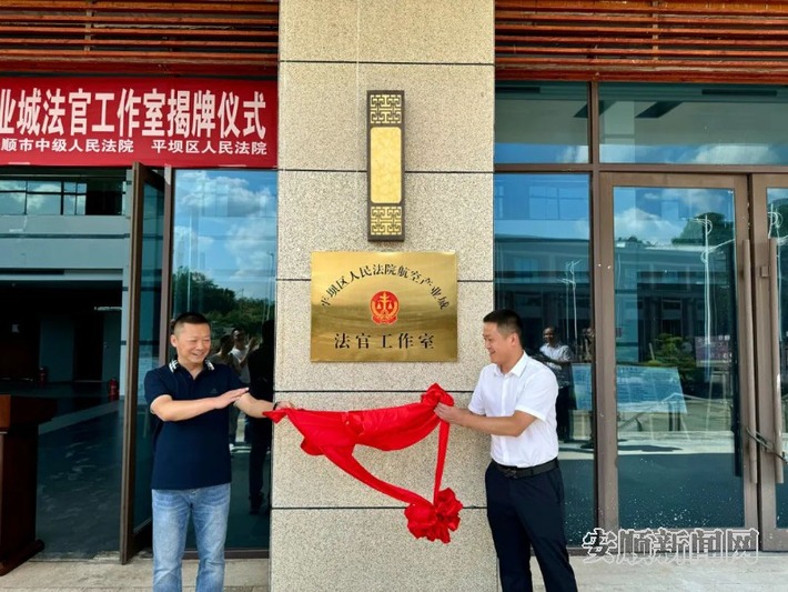 近日,平坝区航空产业城法官工作室在平坝区航空产业城指挥部挂牌成立。安顺市中级人民法院、安顺高新区、平坝区人大、区政协、区人民政府、区委政法委、区人民法院、区工信局、航空产业城指挥部、安平街道办事处、企业代表和相关人员参加挂牌仪式。