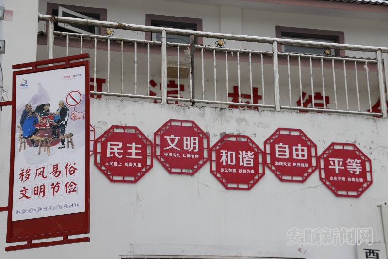 该村又巧用当地文化资源组建文艺文化志愿队,围绕社会主义核心价值观、积德榜、村规民约、家风家训等内容,创作了一幅幅融合了书法、雕刻及民族特色的墙体手绘画,美观新颖的移风易俗文化墙引人入目,为村寨精神文明建设添砖加瓦。
