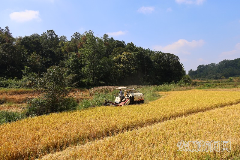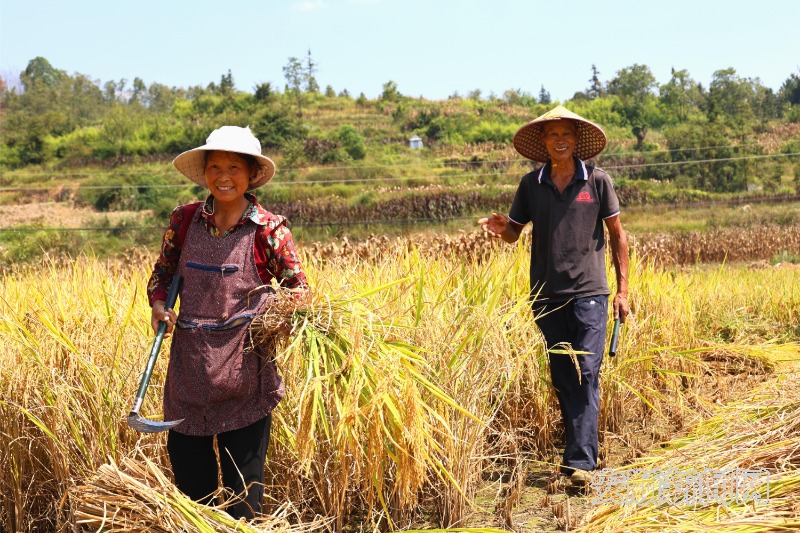 来到地势开阔的新合村,一侧是水稻收割机快速轰鸣,另一侧则是村民雷进勇和妻子一同用镰刀收割水稻。“今年又是一个丰收年,三亩水稻大概有3千多斤的产量,吃不完的就卖到集市,稻谷1.3元一斤,大米2.5元一斤。”望着沉甸甸的稻穗,雷进勇满怀欣慰,干劲十足。