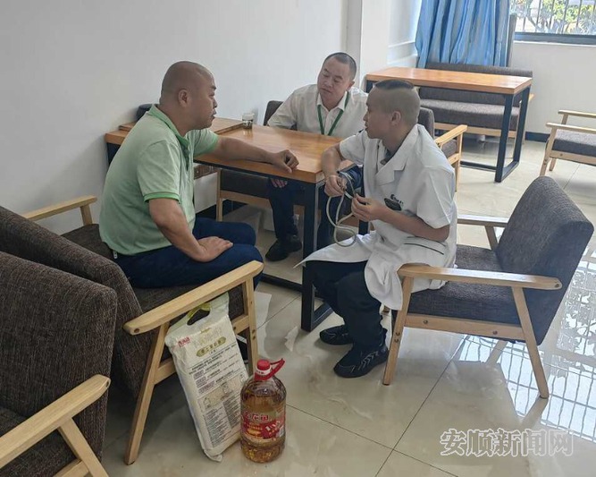 在马槽社区,慰问组集中慰问了10名困难、伤残、参战退役军人,为他们送上食用油、大米等慰问品,感谢他们对祖国、对人民、对部队所做的贡献,并向他们宣传党和政府的拥军优属政策,让他们切实感受到党和政府的关心关怀。同时,贵医安顺医院的医生对他们开展义诊,针对常见的慢性病,如高血压、糖尿病等,逐一为老兵们检查,给出了科学的防治建议。
