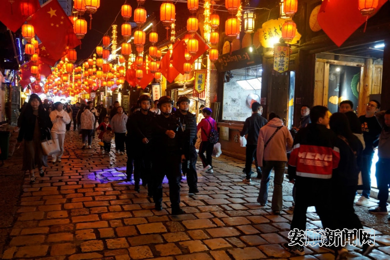 “国庆假期是旅游高峰,我们坚持警力跟着警情走、服务跟着游客走,结合游客流量高峰、重要时间节点,在安顺古城、旧州古镇、本寨等旅游景点,以及火车站、广场、购物中心等人员密集区域科学部署警力,进一步加强旅游景区、商场店铺等重点区域部位和人员密集场所的巡防管控,提升见警率、查控率、管事率。”市公安局西秀分局党委副书记、常务副局长程泌荣说。