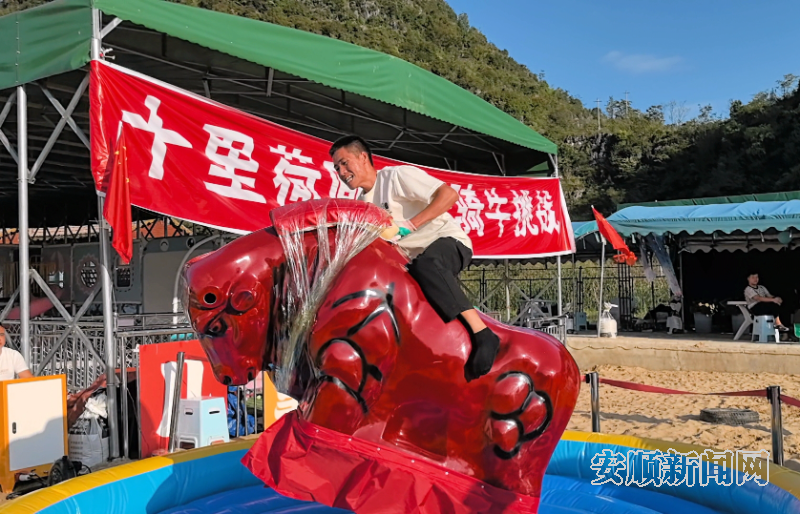 活动现场,来自贵阳的游客李女士表示:“这次国庆假期选择来十里荷廊玩,真是太值了!这里的活动丰富多彩,既有趣味性,又有挑战性,非常适合家庭出游。”安顺本地游客张先生则对骑牛挑战项目赞不绝口:“这个项目太刺激了!虽然有点挑战性,但是很好玩,让我感受到了不一样的旅游体验。”