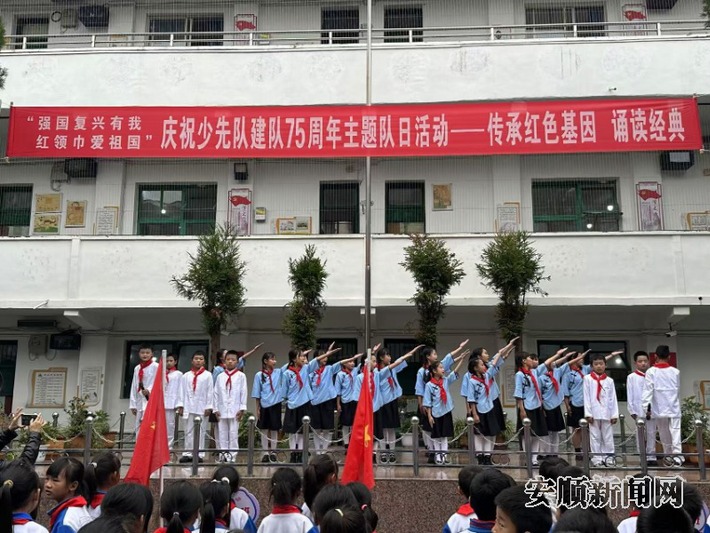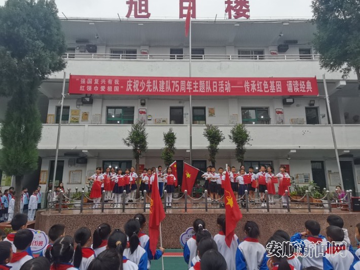 在安顺市第六小学,开展了新队员入队仪式、主题中队会、红色经典诵读等活动。同时,同学们在辅导员老师的带领下来到王若飞故居陈列馆,佩戴上鲜艳的红领巾、入队宣誓、参观陈列馆。在红色经典诵读中,少先队员们朗诵了《强国复兴有我》《红旗一角的故事》等作品,用整齐响亮的声音表达了对祖国的赞美和热爱。