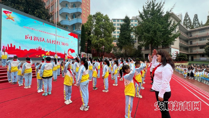 在安顺市第五小学,开展了以“红领巾爱祖国 争做新时代好队员”为主题的少先队新队员入队仪式。伴随着激昂的出旗曲,旗手们高举队旗,阔步前行。少先队员们集结在星星火炬旗帜下,向着神圣的队旗庄严敬礼。