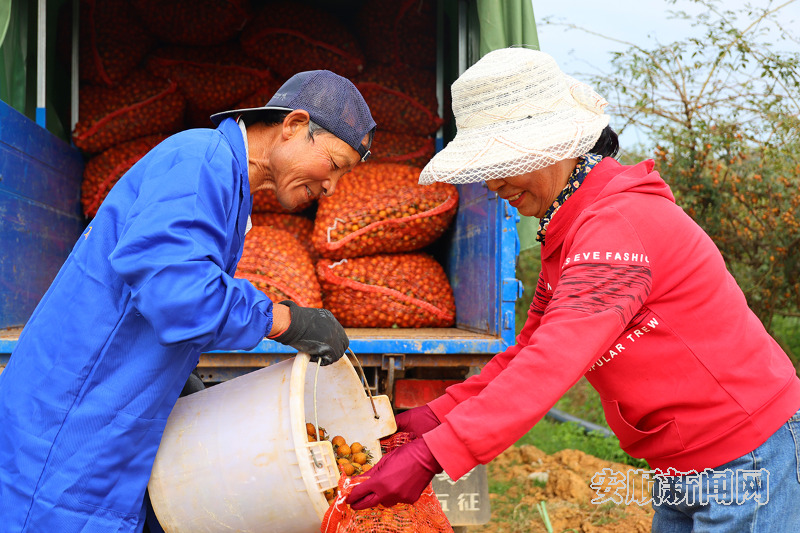 小小一颗金刺梨,不仅富含多种氨基酸、维生素和矿物质营养元素,是名副其实的“维C之王”,更在乡村振兴的道路上不断促进村民就业增收。家住大坝村沙子关的村民张贵仙自己家里种了近4亩金刺梨,现在忙完自家的采收,便来村合作社务工。她一边手脚麻利的将果子放入桶中一边说:“按照重量结算工钱,我一天能采400多斤,可以挣200多元的工钱。”