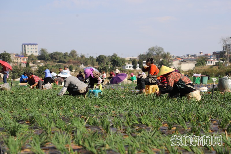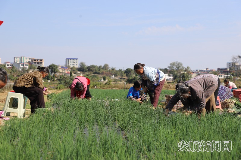 近日,走进西秀区轿子山镇龙兴村香葱种植基地,数十位村民正在拔葱、搬运、栽种、洗葱,眼前尽是一派热闹忙碌的农耕景象,一垄垄葱郁郁葱葱,微风拂过,清香阵阵入鼻,沃野丰收在望。