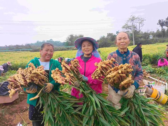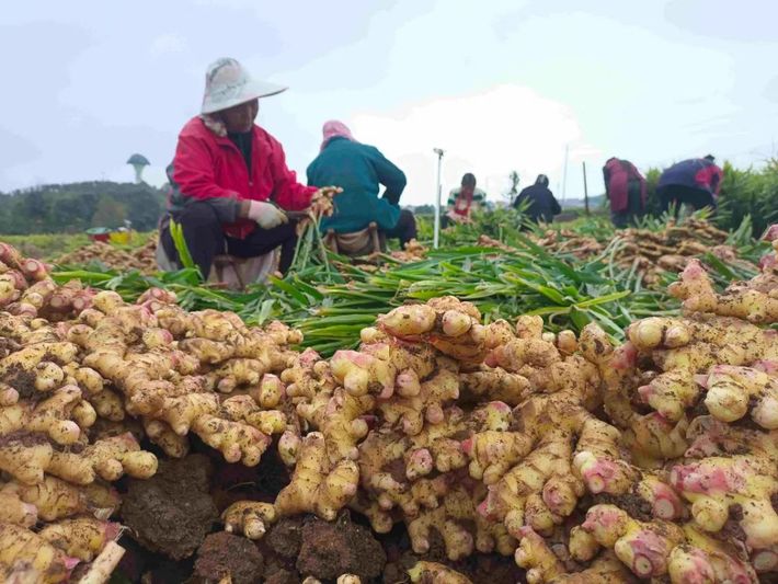 “大葱、黄瓜已经采摘结束,目前的生姜采收还会再进行半个月左右。同时,规模化种植生姜属于劳动密集型产业,从选种、栽种、田间管理到采收,每个环节都需要大量的劳动力。因此,生姜种植也有效带动了高田村周边村民就近务工增收。”天龙镇高田村驻村第一书记陈恒红说,高田村有着良好的区位优势和产业发展基础,近年来,该村充分利用当地的各种条件优势,积极调整优化农业产业结构,因地制宜发展生姜、黄瓜、冬瓜等特色种植产业,不仅丰富了群众的“菜篮子”,更是鼓起了农户的“钱袋子”,助推了农民增收和乡村产业兴旺。