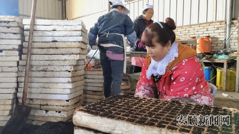 村民在蔬菜育苗基地务工