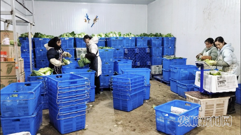 安顺黔优优生态农业开发有限责任公司工人在冷库中分拣蔬菜