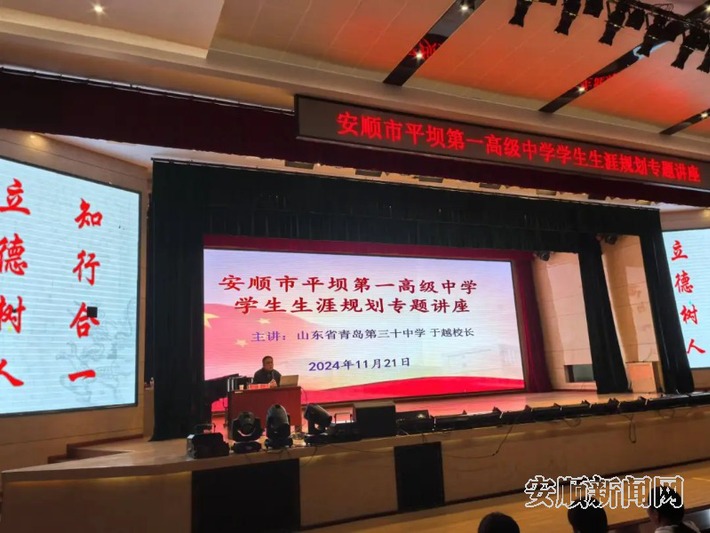 近日,平坝区第一中学迎来了一场别开生面的职业规划启蒙课。山东省青岛市第三十中学校长于越受邀担任主讲,为该校陈法书院300余名师生带来一场职业生涯的启迪。