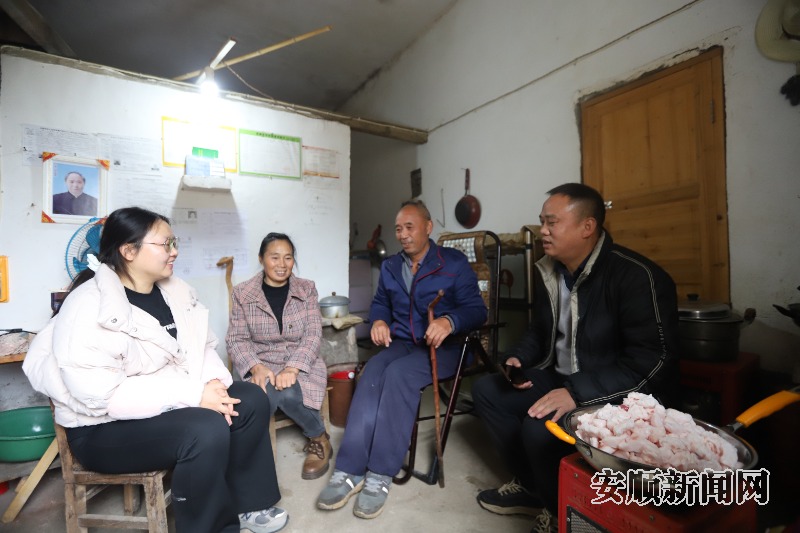 乡、村干部回访脱贫户周苗子