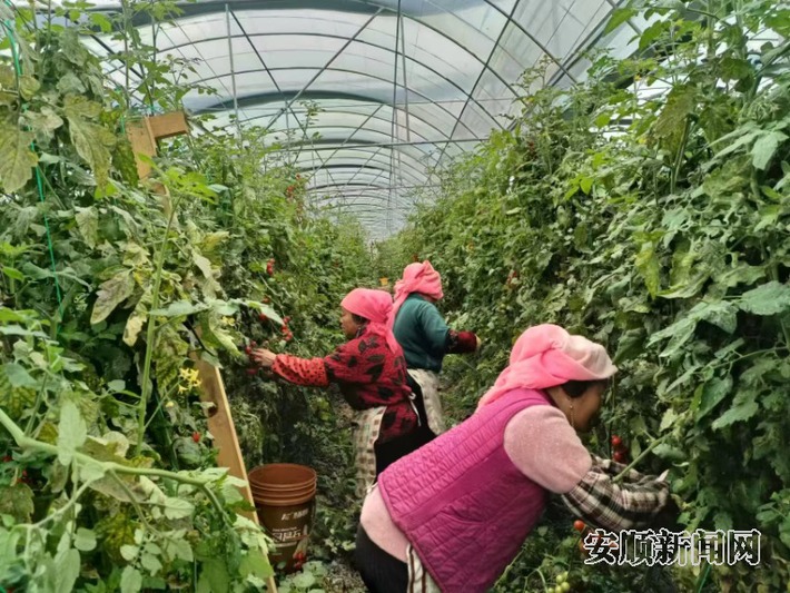 虽值寒冬,本桥村的水果西红柿上市仍还在销售。进入该村蔬菜种植大棚内,工人正在采摘藤蔓上一串串鲜红果实,经包装后,这批西红柿将被销往贵阳。