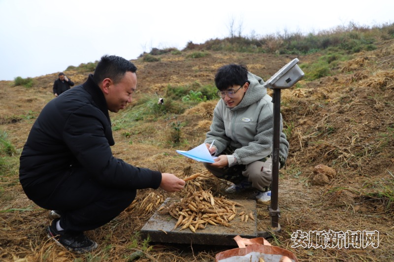 冬日寒气袭人,在西秀区双堡镇军马村,贵州京之安农业生物科技有限公司的200亩天门冬种植基地里,却是一派热火朝天的繁忙景象。一个个挖出的天门冬块茎,如小萝卜般饱满喜人,村民们将挖出的天门冬进行分散、除泥后,再用剪刀将多余根茎剪除,分拣打包好。来自省农科院的农业专家们和市农业农村局相关技术人员正在一旁对天门冬进行测产。