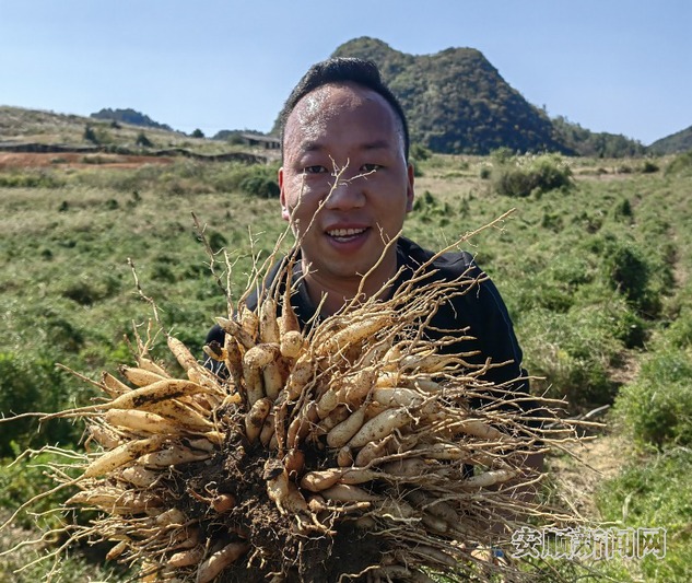 “我们是2022年在这里种植天门冬,最近天门冬市场价鲜品4元每斤,干品28元每斤。天门冬纳入药食同源管理后,市场需求进一步扩大。”贵州京之安农业生物科技有限公司技术总监张秀荣介绍,收获的天门冬采取订单模式销往广西玉林、安徽亳州等中药材交易市场,预计每亩能挣1万多元。