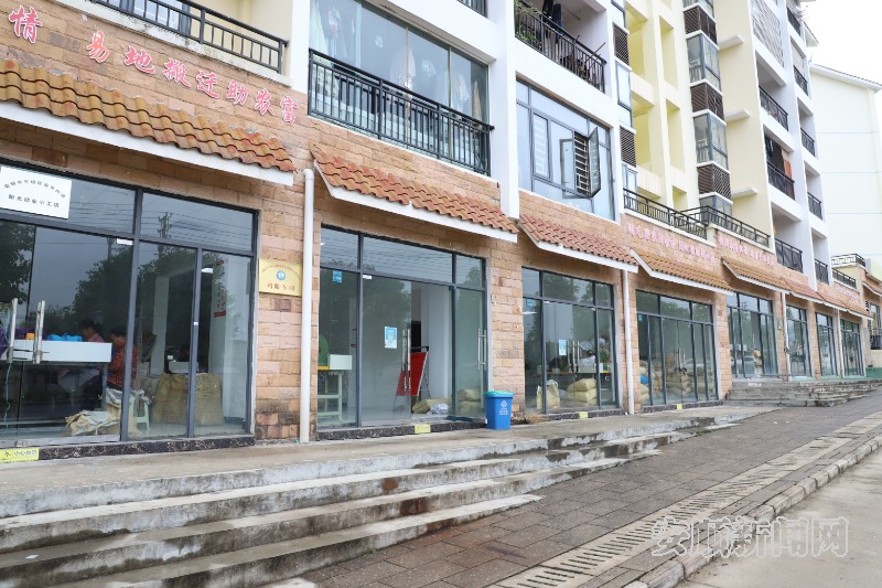 搬迁户何国英每天将两个小孩送到学校,就来到小区楼下制伞加工车间上班,她告诉记者:“工资按计件算,多劳多得,每个月有近3000元的收入,真正实现了在家门口就能够就业,生活很安心。”