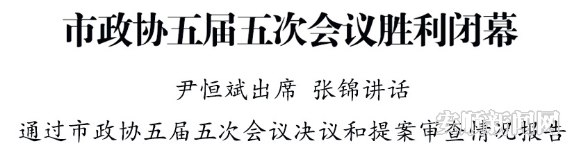 市政协主席张锦讲话,市委常委、市政协党组副书记程华恩,副主席杨平、何晓东、吴松、项建、李用奇、姚勇、刘敏、周文捷,秘书长吴勇出席会议,闭幕会执行主席由张锦、李用奇、姚勇担任。张锦主持闭幕会。