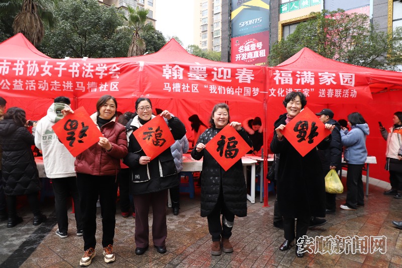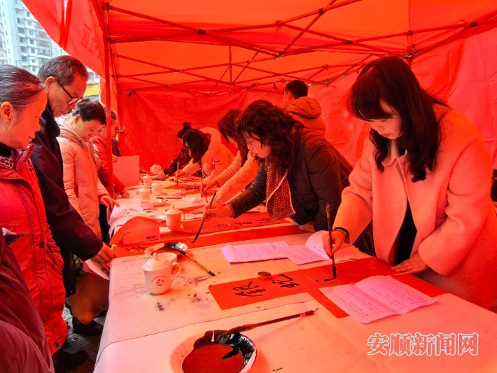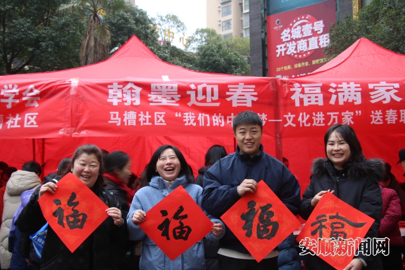“过大年,写春联”是中华民族传统民俗文化活动,是年味的象征。为了丰富居民文化活动,喜迎新年的到来,1月15日,西秀区马槽社区联合安顺市书协女子书法学会开展“我们的中国梦——文化进万家”送春联活动。