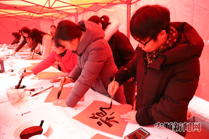 “一到写春联的时候,年味就浓啦!这么冷的天气,女子书法学会的老师们还在写春联送祝福,我们感觉到心里暖暖的。”拿着精心挑选的“福”字,市民孙鸿萍乐呵呵地说道。