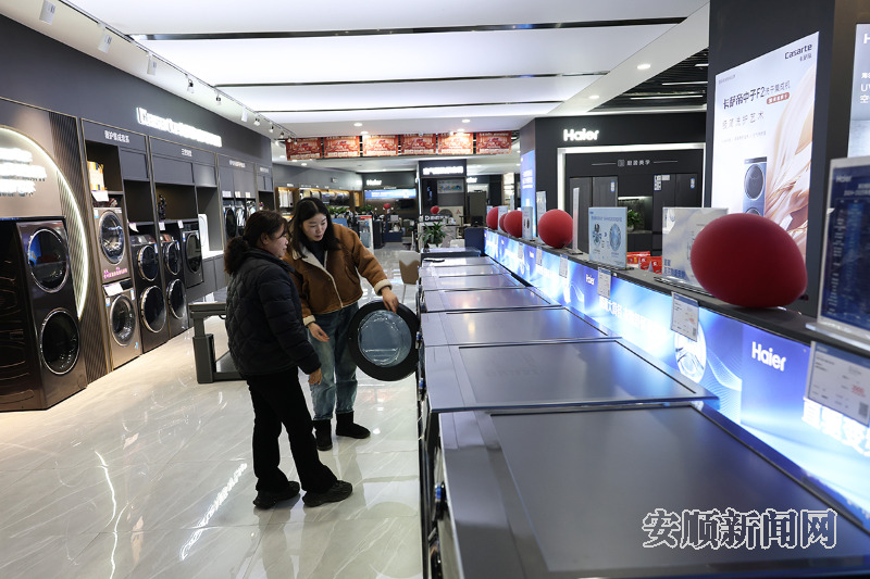 在普定成峰电器海尔专卖店内,各类家电产品整齐陈列,不少消费者到店选购。正在购买洗衣机的顾客李雪说:“趁着现在有补贴政策,我准备把我家旧洗衣机给换了,便宜了1200多元,还是比较划算的。”