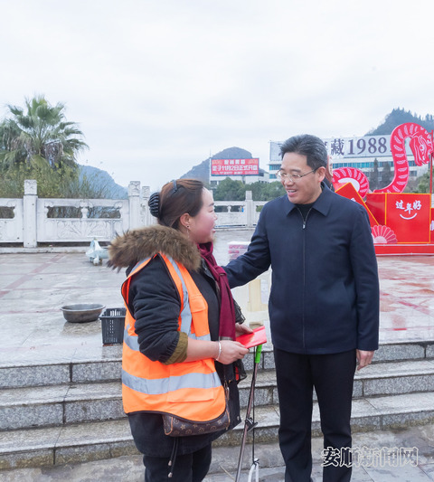 尹恒斌还在西秀区东街环卫所和城区通过随机形式看望慰问环卫工人,了解节日期间的城市保洁情况,对坚守工作岗位的一线环卫工人表示感谢。他说,环卫工人是城市的“美容师”,城市运转一天也离不开环卫工人,即便是新春佳节,大家依然辛勤工作,默默坚守,为广大市民创造干净整洁的城市环境,要为大家点赞。各级各部门要强化对环卫工人的关心关爱,为广大一线环卫工人办实事、做好事,积极营造关心支持环卫事业的良好氛围。
