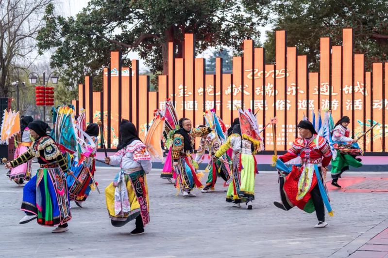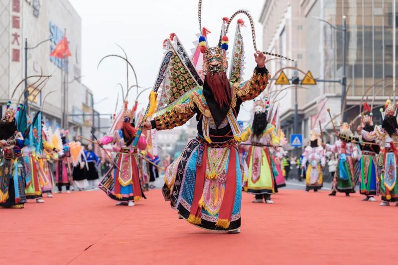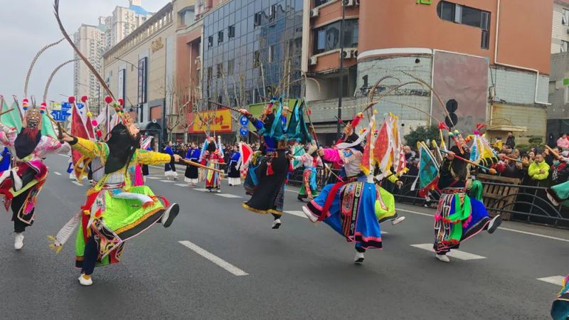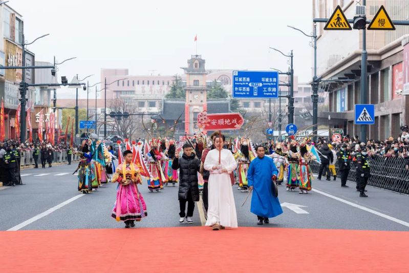 2月2日,农历正月初五下午,江苏省南通市“金蛇献瑞乐通城”新春民俗巡游在南大街商圈热闹启动,活动以欢歌载舞的方式,共庆申遗成功后的首个春节。作为合作友好城市,为加强文旅交流合作,我市受邀组织安顺地戏方阵参加巡游活动。