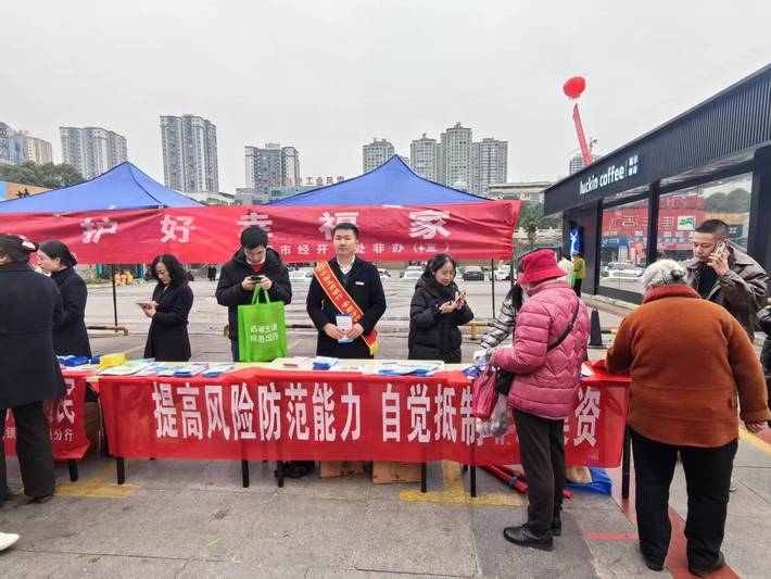 进商圈,筑牢防非防线,守护群众钱袋子。该行走进安顺南马广场商圈开展主题宣传活动,通过设置咨询台、发放宣传资料、现场讲解等方式,向过往群众普及非法集资的常见手段和危害,如承诺高额回报、编造虚假项目等。同时,结合实际案例,引导群众树立正确的投资观念,增强风险防范意识,自觉抵制非法集资,护住自己的“钱袋子”。