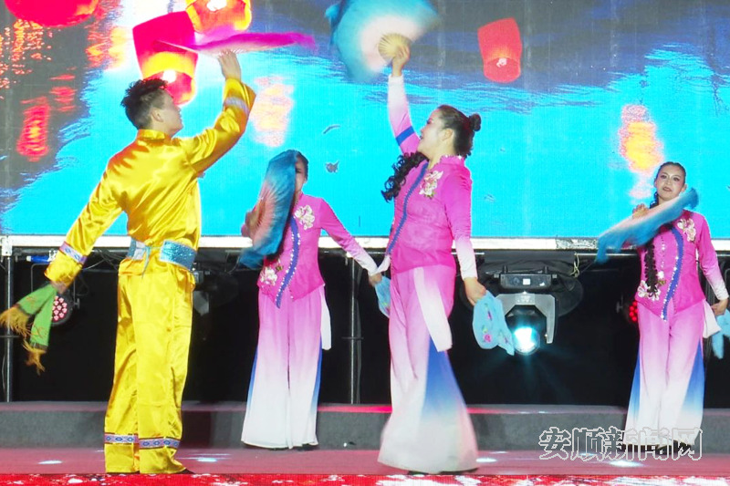 当晚,随着音乐声响起,《苗家敬酒歌》和《古彝欢歌》率先登场,以极具感染力的旋律,带领观众穿梭于民族历史的长河,感受岁月沉淀的独特魅力。普定花灯作为省级非物质文化遗产,在《跳起花灯闹新春》的演出中,身着绚丽多彩服饰的演员们鱼贯登台,手中的折扇一开一合,似彩蝶飞舞,又像繁花绽放,每一个动作都饱含着对新春的祝福,对美好生活的祈愿。