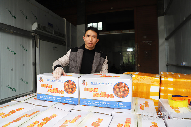2月9日,走进贵州尝肠来食品有限公司生产车间,小肠香气扑鼻,工人们在各自的岗位上忙碌着。清洗、腌制、烘烤、速冻、切段、称重、包装……经过一系列生产工序处理后,一箱箱“烤小肠”制作完成,等待冷链物流车前来装货,发往贵阳和昆明。