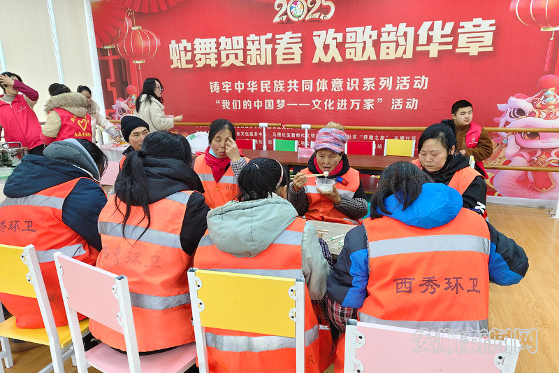 社区工作人员邀请20余名环卫工人一起吃汤圆