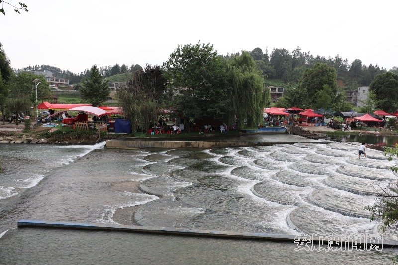 九溪村依托喀斯特地貌与邢江河的生态基底,打造了百亩荷塘、千亩茶园、鱼鳞瀑布、彩虹桥等景观,形成了“春采茶、夏赏荷、秋游园、冬品俗”的全季旅游模式。