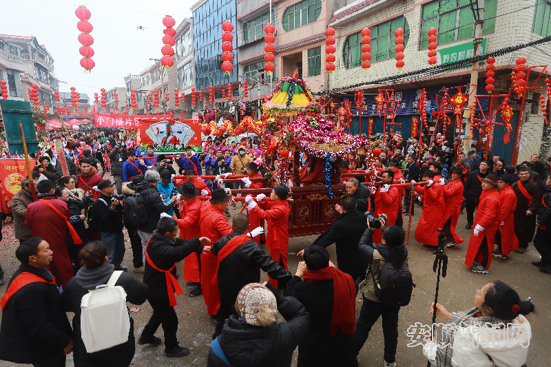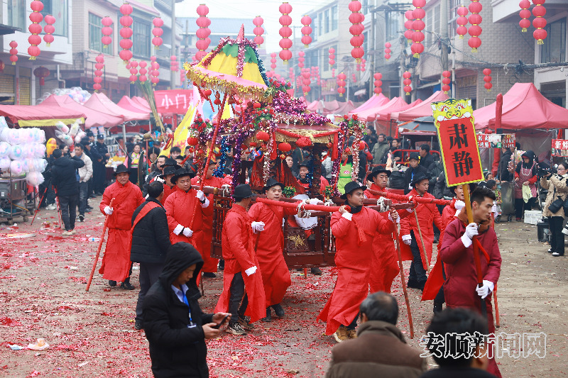 2月13日是农历正月十六,西秀区大西桥镇狗场屯村举行屯堡“抬亭子”迎新春民俗活动。