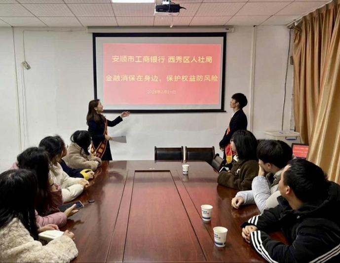 2月21日,工行安顺格凸河支行前往安顺市人社局,开展了一场以“共筑金融屏障,维护消费者权益”为主题的金融知识宣传活动,旨在帮助群众了解金融消费者权益,预防新型网络诈骗,防范洗钱风险。