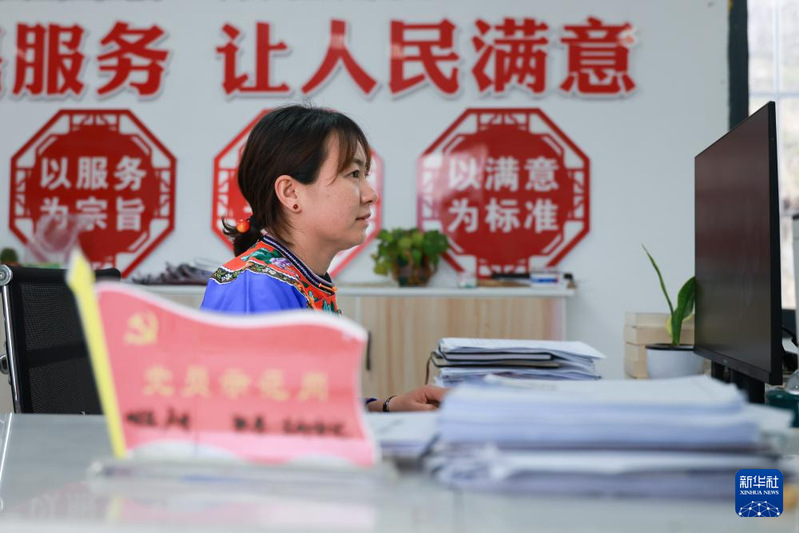 卢丹在镇宁布依族苗族自治县六马镇致富村村委会内工作(2025年2月20日摄)。新华社记者 刘续 摄