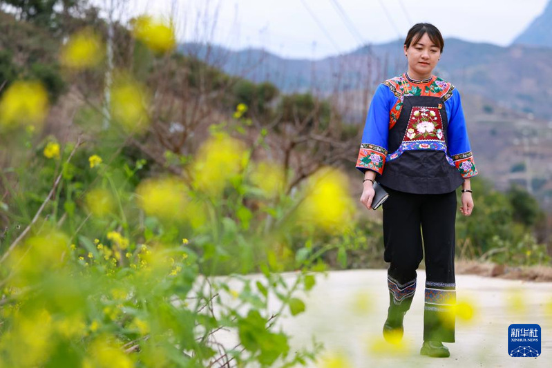 在镇宁布依族苗族自治县六马镇致富村,卢丹准备到村民家中入户走访(2025年2月20日摄)。新华社记者 刘续 摄