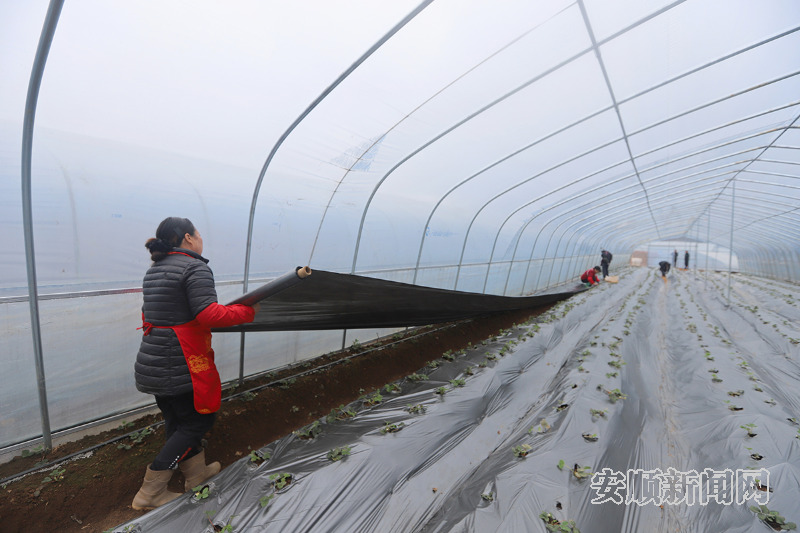 选种忙,田间管护亦是紧锣密鼓。在龙青村樱花园旁,一片大棚里传出谈话声,走进一看,是西秀区金灿绿优家庭农场负责人胡德印在指导工人给草莓苗“穿衣”。“盖上地膜可以起到保温保湿作用,也能控制杂草滋生,然后施好水溶肥、控好棚内温度湿度、疏好花和果,草莓苗就能健康生长了。”胡德印说。