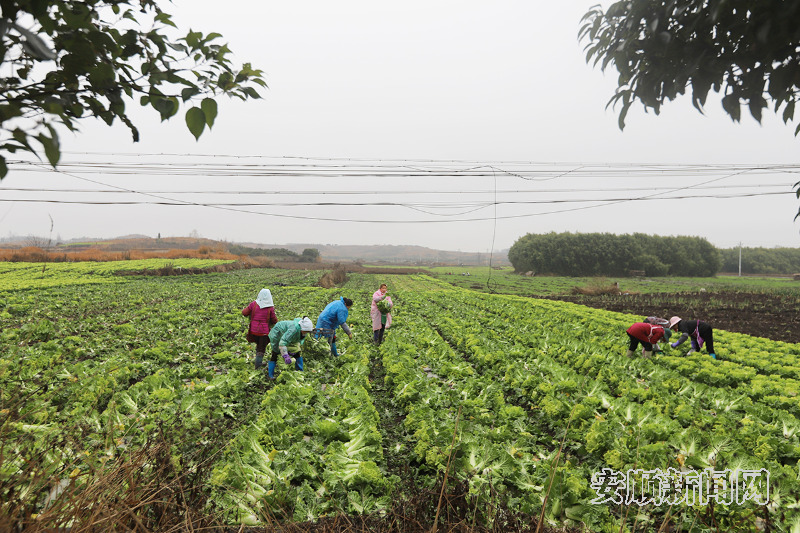在羊边城村宽阔笔直的县道旁,是一片绿油油的白菜,蔬菜种植大户姜付荣和工人正忙着往车厢里装菜,地里还有几位工人在收割。“这些地都是黑土地,种出来的菜品质很好,白菜亩产8000多斤。今天要运3吨去贵阳扎佐,剩下的过几天也要全部卖掉。”姜付荣说。