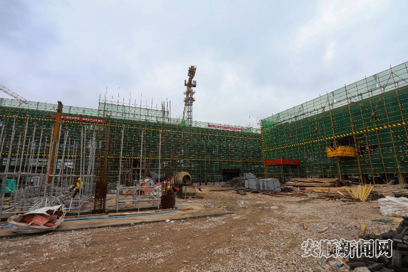 2月25日,记者在西秀区武当路与二环路交汇处的武当路片区城市更新改造及配套基础设施建设项目(一期)安顺市实验学校北校区建设项目看到,工人们正在加紧施工。