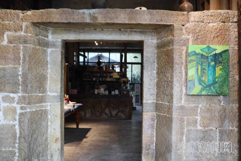 牛蹄关村“村咖”店内保留的原居民住宅的石门