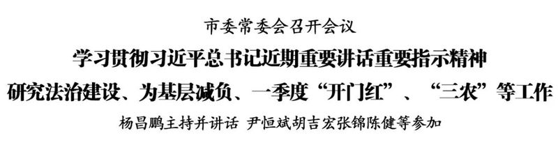 2月27日,市委常委会召开会议,学习贯彻习近平总书记近期重要讲话重要指示精神,传达中央和省级层面整治形式主义为基层减负专项工作机制会议精神,2月25日市(州)委书记座谈会精神,省委副书记、省委政法委书记马汉成来安调研精神,研究部署法治建设、为基层减负、一季度“开门红”、“三农”等工作。