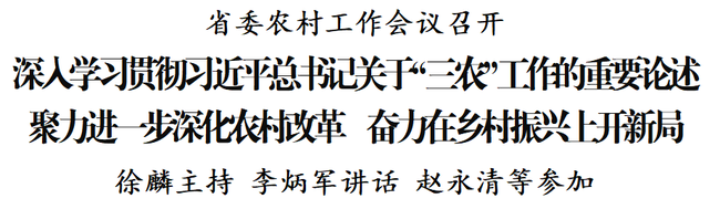 会议强调,今年是巩固拓展脱贫攻坚成果同乡村振兴有效衔接五年过渡期的最后一年,是进一步全面深化改革的重要一年。要坚持以高质量发展统揽全局,远谋近施、真抓实干,全力推动农业增效益、农村增活力、农民增收入,加快推进农业农村现代化。要突出精准施策,把耕地保护红线和粮食安全底线、不发生规模性返贫致贫底线守得更牢;突出提升水平,深入学习运用“千万工程”经验,深化“四在农家·和美乡村”建设,把乡村振兴抓得更好;突出深化改革,提高农村改革综合效能,把动力活力鼓得更足;突出协同联动,坚持五级书记一起抓,强化党建引领,把工作责任压得更实,开创全省“三农”工作新局面。