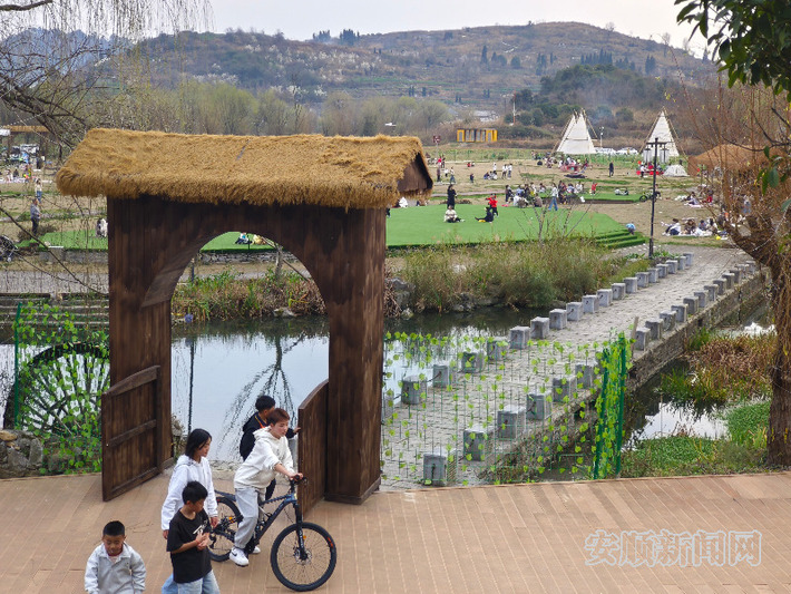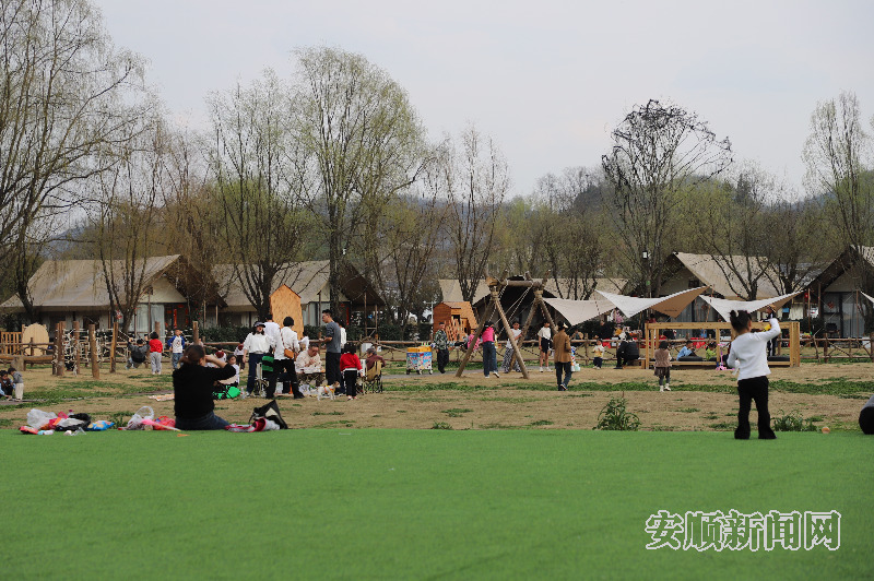 随着天气逐渐回暖,“春日经济”不断升温。3月2日,在西秀区七眼桥镇云峰屯堡景区“云峰·浔境”营地,不少游客市民到这里追寻诗与远方。游客们在营地寻一片绿地,搭一顶帐篷,与好友围炉煮茶、烧烤。许多家长带着孩子来放风筝、荡秋千等,享受愉悦的休闲时光。