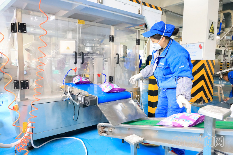 日前,记者走进位于安顺经开区的贵州南风日化有限公司,生产车间内一片繁忙景象,工人们各司其职,机器不停运转,一袋袋洗衣粉在生产线上快速成型,厂房门口数辆大货车有序排队上货,等待发往市场。