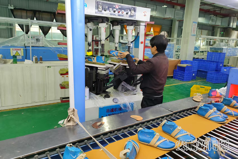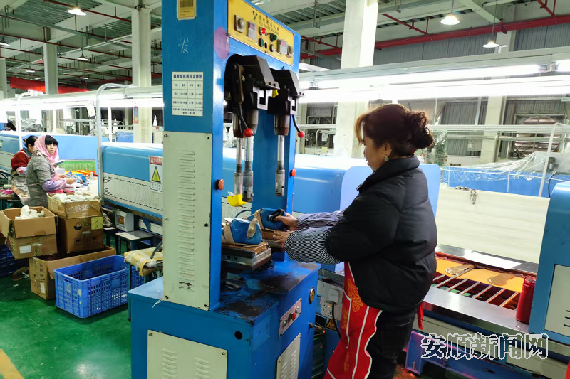 日前,记者走进位于西秀区东屯乡的安顺市顺熙鞋业有限公司车间内,一排热火朝天的生产景象扑面而来,各类机械设备有序运作,工人们全神贯注地在各自的岗位上忙碌着,裁剪、针车、喷胶、成型等一道道流程有条不紊地进行着。