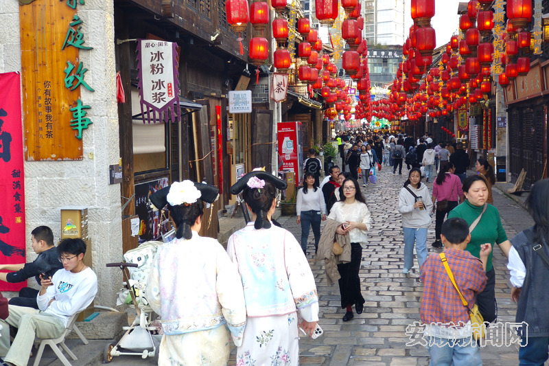 walk的年轻游客安琪和她的朋友们。安琪兴奋地说:“我们从网上看到安顺古城很有特色,就决定来这里City