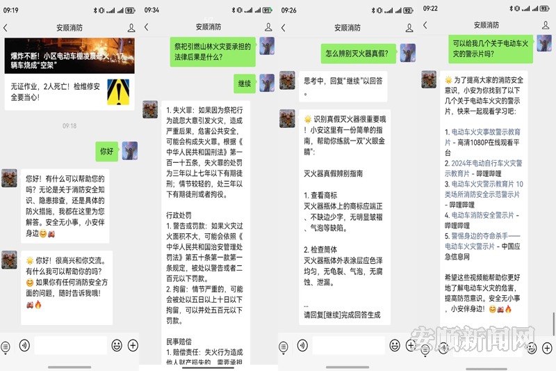 下一步,安顺消防将积极开展新技术变革,继续探索人工智能在火灾防控、科普教育等领域的应用场景,加快推进消防宣传智能化建设,让消防知识变得更加生动有趣,让安全理念入脑走心,真正实现风险预警前置化、知识传递场景化、全民参与常态化的群防群治新格局。