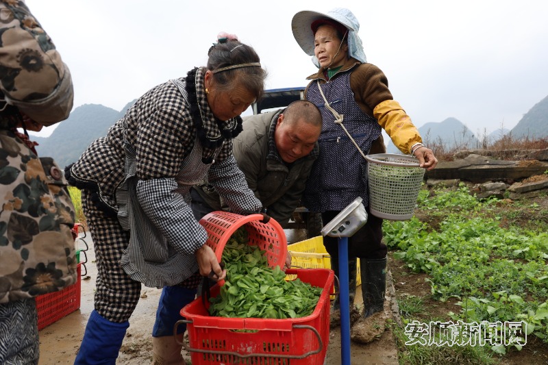 村民给豌豆尖称重