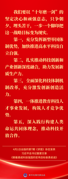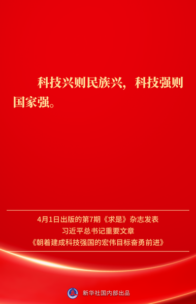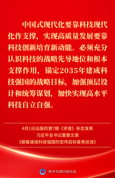4月1日出版的第7期《求是》杂志发表习近平总书记重要文章《朝着建成科技强国的宏伟目标奋勇前进》。如何一步一个脚印把建成科技强国的战略目标变为现实?习近平总书记这样指引方向——